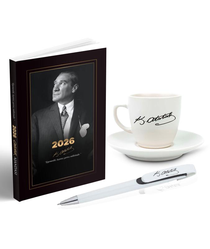 2026 Atatürk İstikbal Ajanda - Atatürk İmza Baskılı Kahve Fincanı - Ayraç - Kartpostal Kişiye Özel