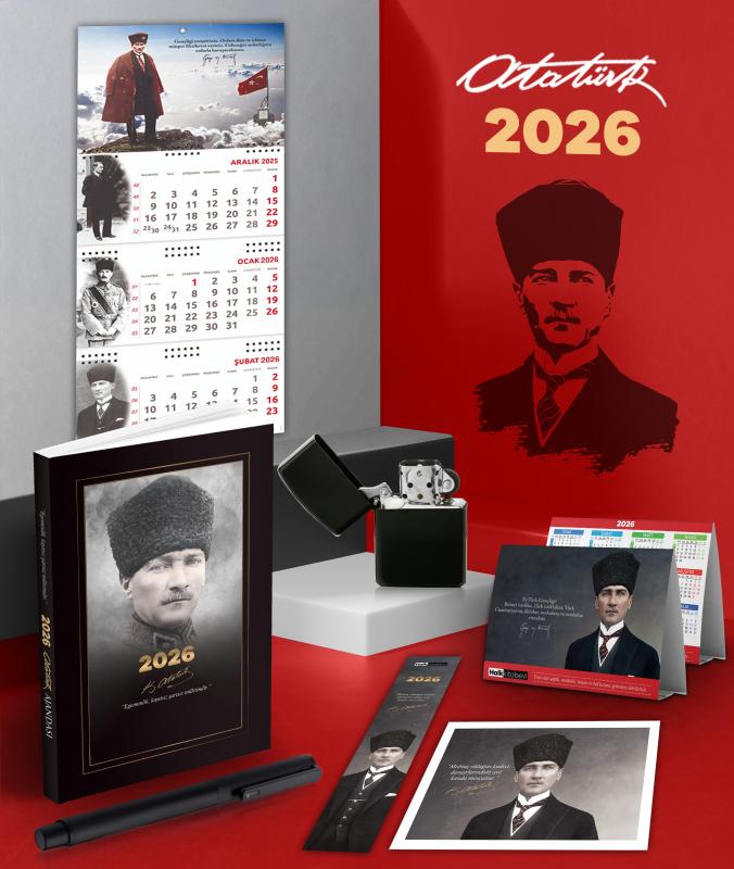 2026 Atatürk Komutan Ajanda - Sakarya Duvar Takvimi - Masa Takvimi - Ayraç - Kartpostal - Metal Roller Kalem ve Benzinli Çakmak