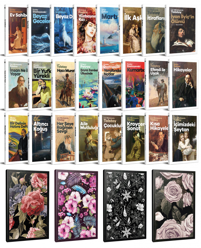 24 Dünya Klasiği ve Çiçekli Çizgili Defter Seti -1