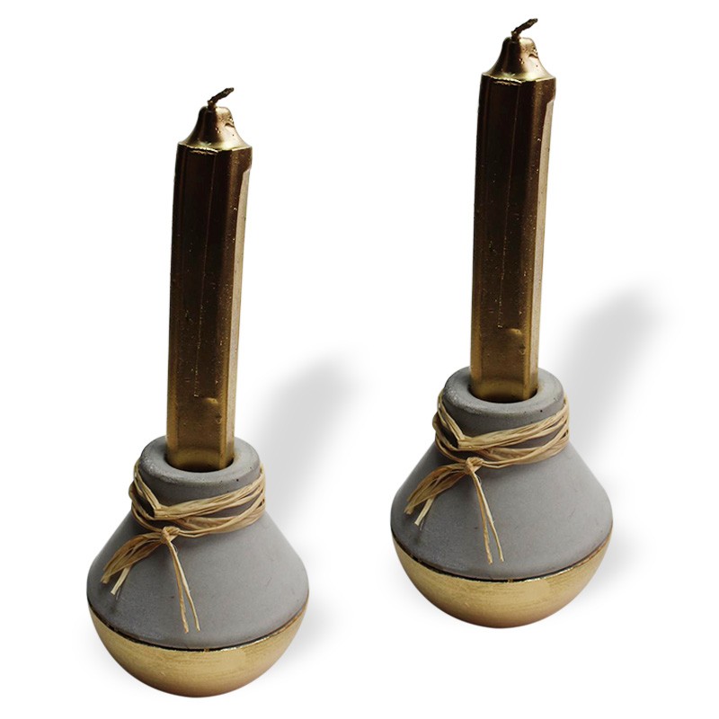 2'li Altın Topaç Beton Mumluk HK1525