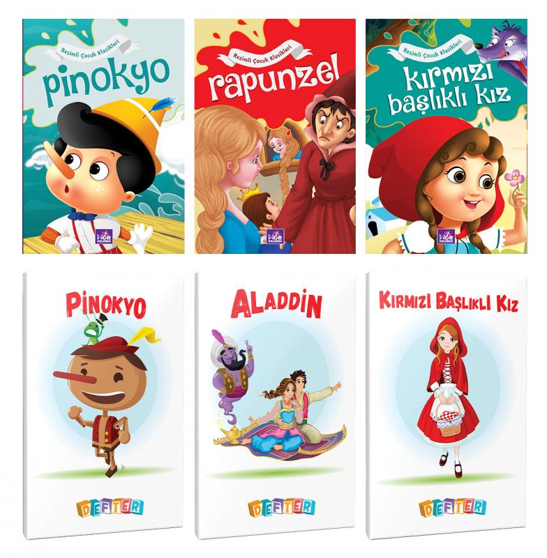 3 Renkli Dünya Masalı ve 3 Masal Karakteri Temalı 64 Sayfa 13,5x19,5 Okul Defteri Seti 5