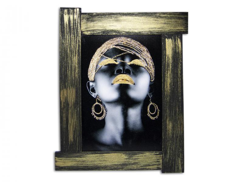 3D Altın Varaklı Kadın Portre Ahşap Tablo HK0011-AV