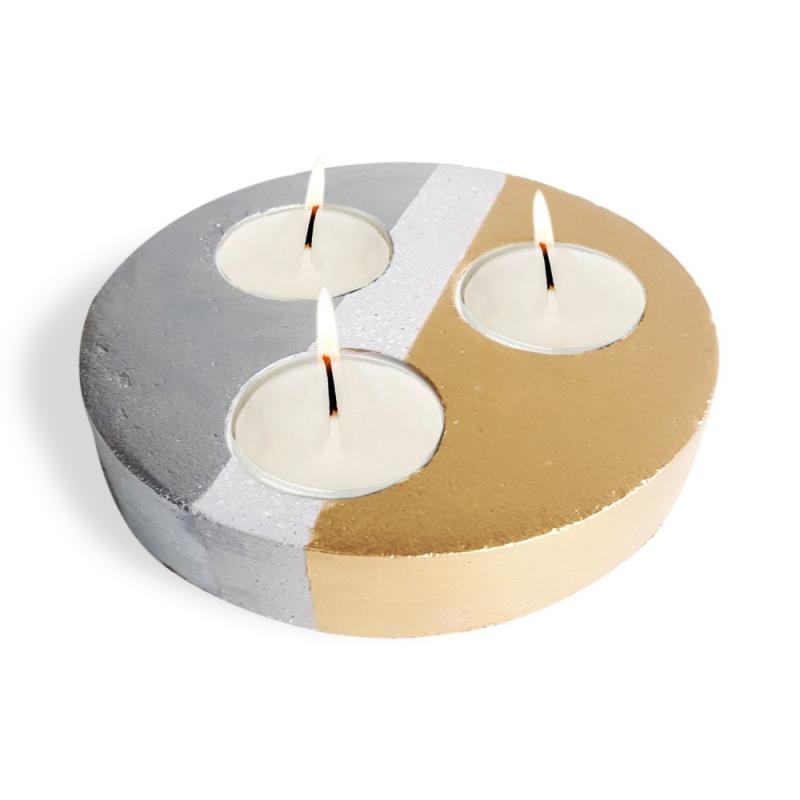 3'lü Yuvarlak Beton T-Lightlık Altın Varaklı
