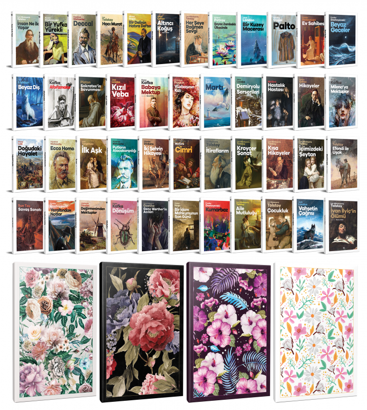 45 Dünya Klasiği ve 4 Adet 64 Sayfa Çiçekli Çizgili Defter Seti -3