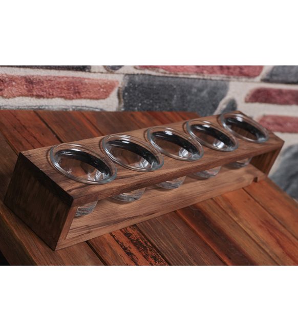 5'Li Ahşap T-Lıght Cam Mumluk HK0229