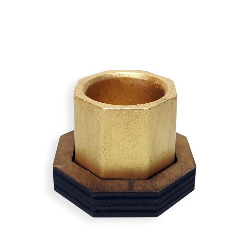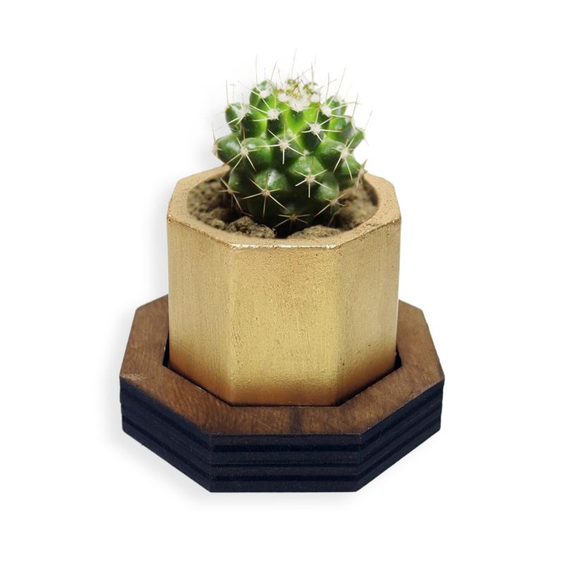 Ahşap Ayaklı 6gen Beton Saksı Altın Model 1HK1657