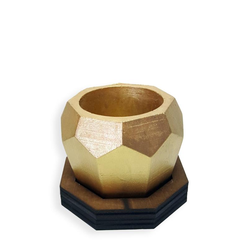 Ahşap Ayaklı, Elmas Desenli Beton Saksı Altın HK1654