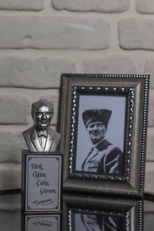 Ahşap Ayaklı Gümüş Beton Atatürk Büstü HK1601