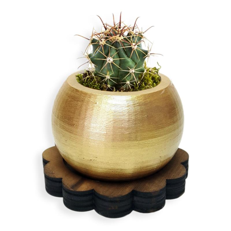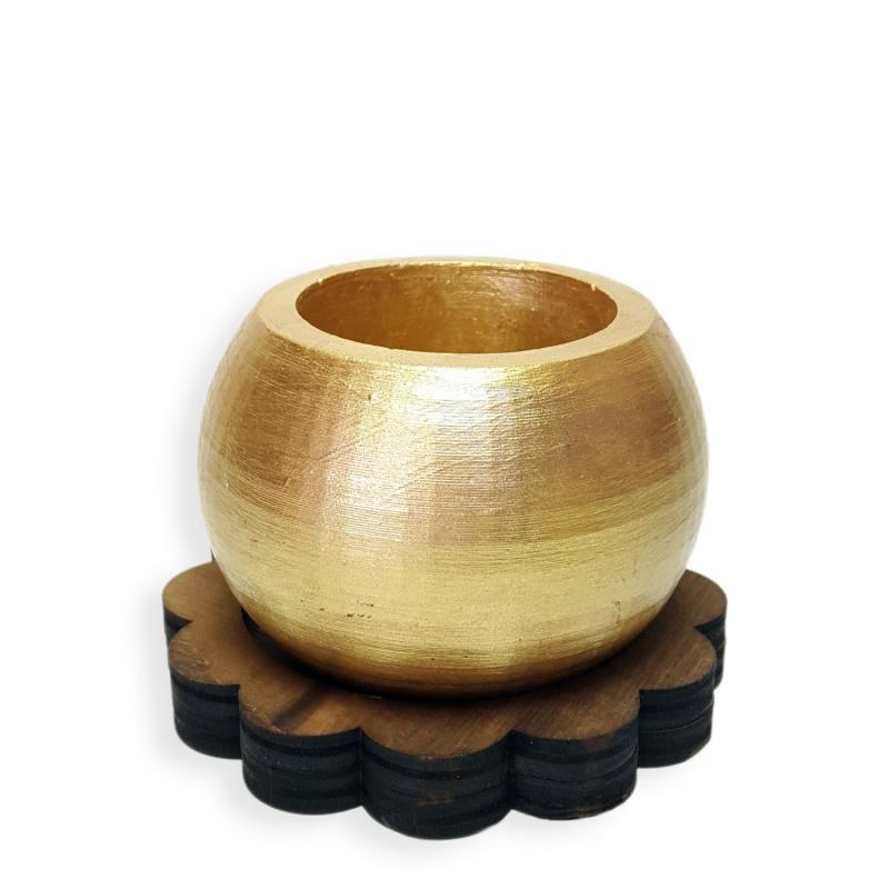 Ahşap Ayaklı, Küre Desenli Beton Saksı Altın