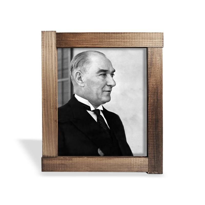 Ahşap Çerçeveli Atatürk Tablosu "Kalpaklı Siyah Beyaz"