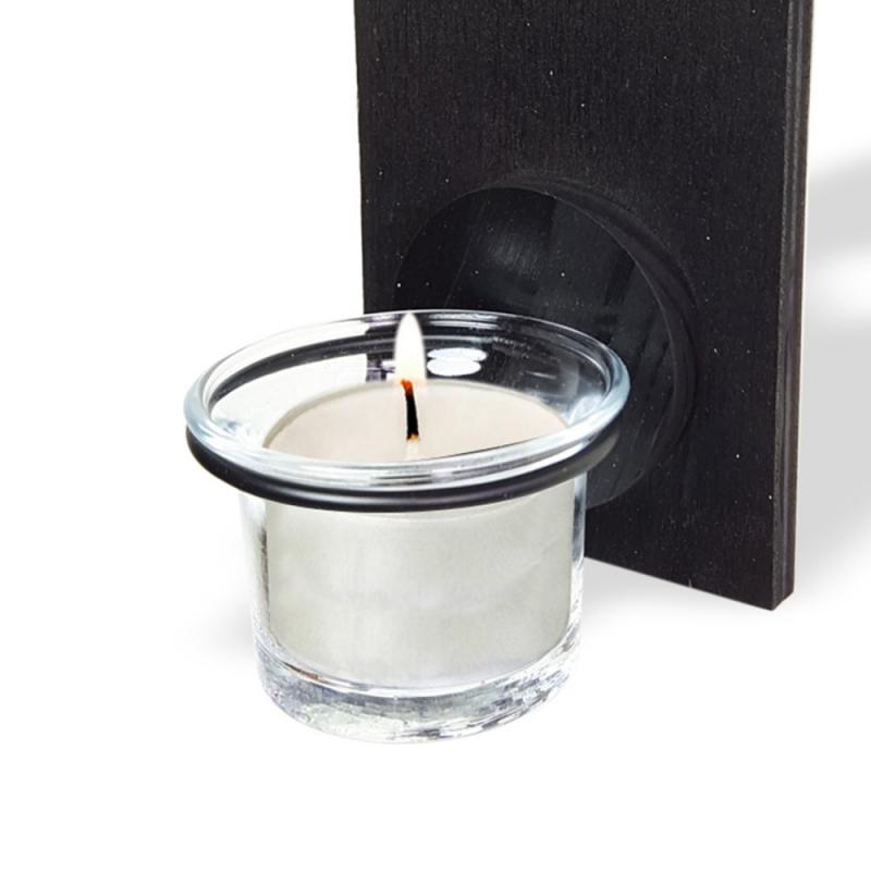 Ahşap Ev Desenli Tekli T-Light Cam Mumluk "Siyah"