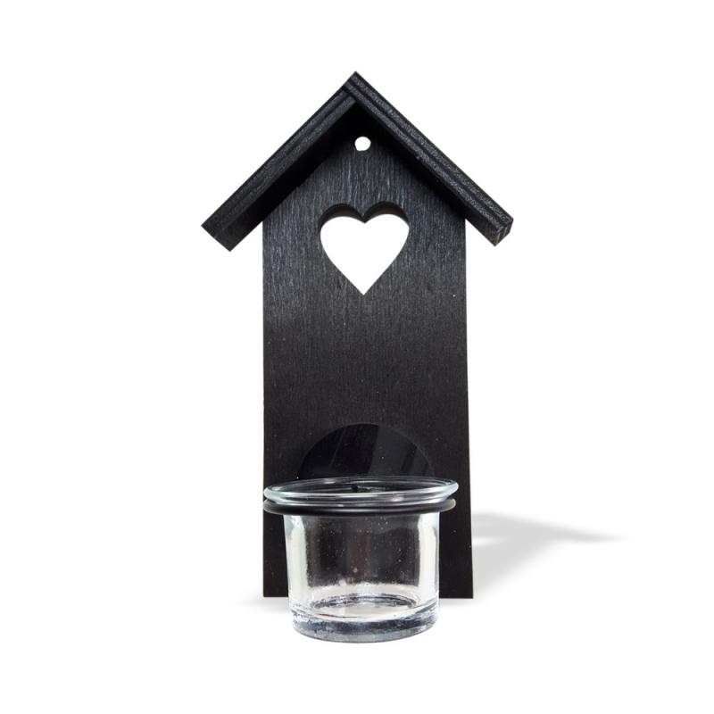 Ahşap Ev Desenli Tekli T-Light Cam Mumluk "Siyah" HK0226-0002