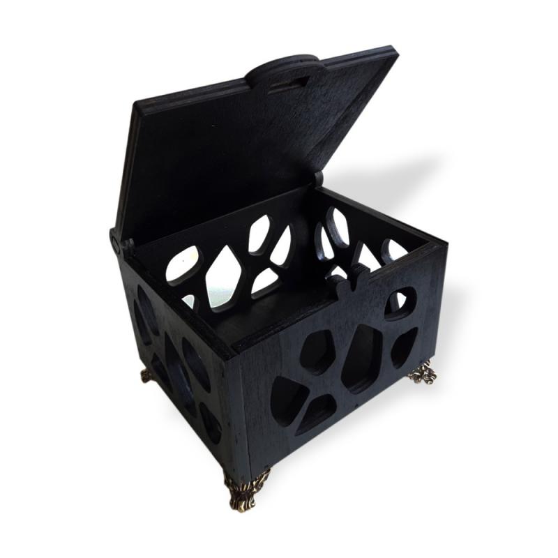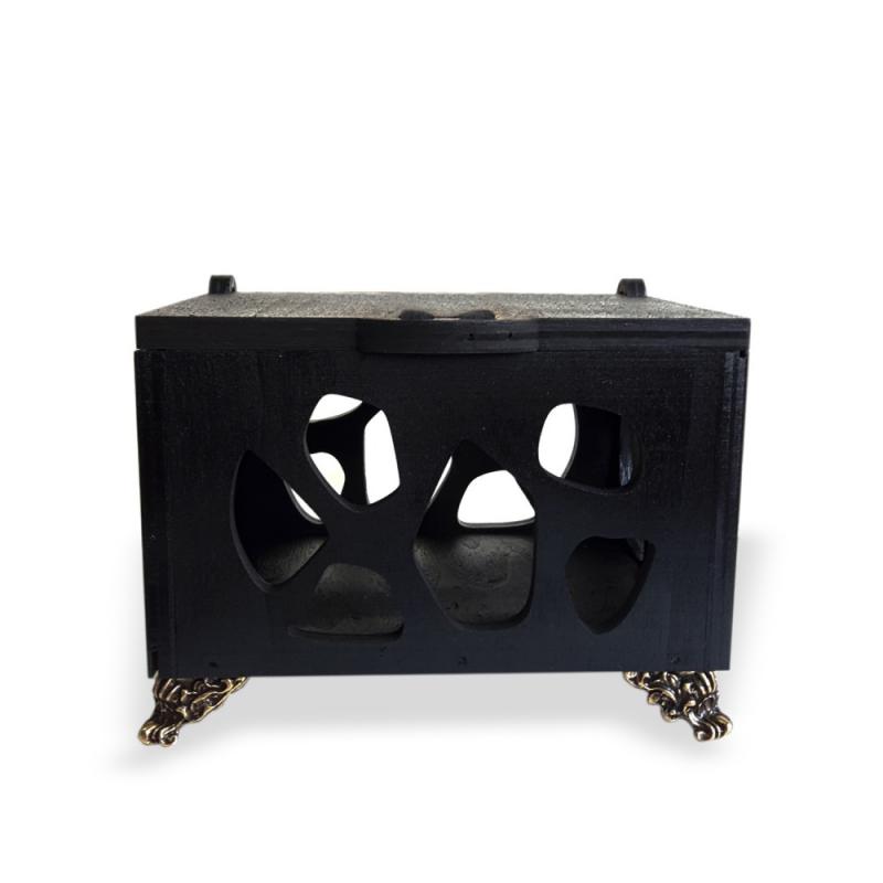 Ahşap, Kapaklı Kutu, Leopar Desenli Payihtaht Ayaklı, Siyah