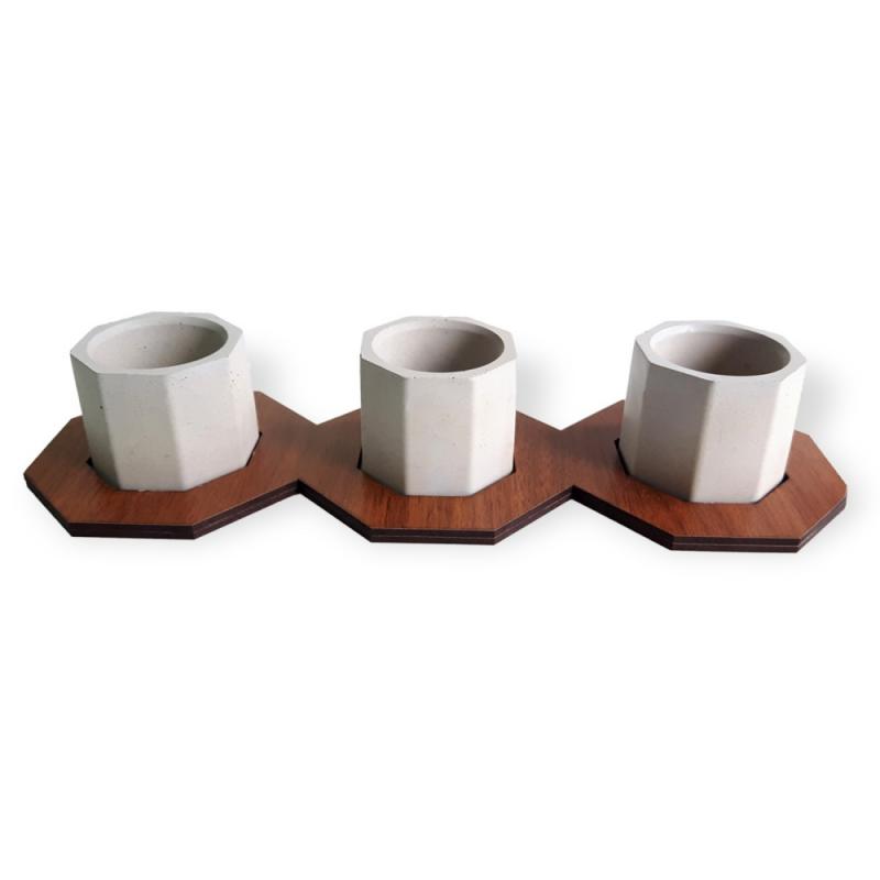 Altıgen Ahşap Ayaklı Beton Saksı Seti HK1659