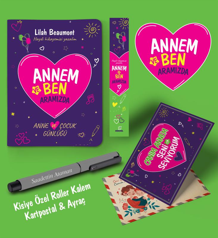 Annem ve Ben Aramızda Ayraç Kartpostal Kişiye Özel Kalem - Gri