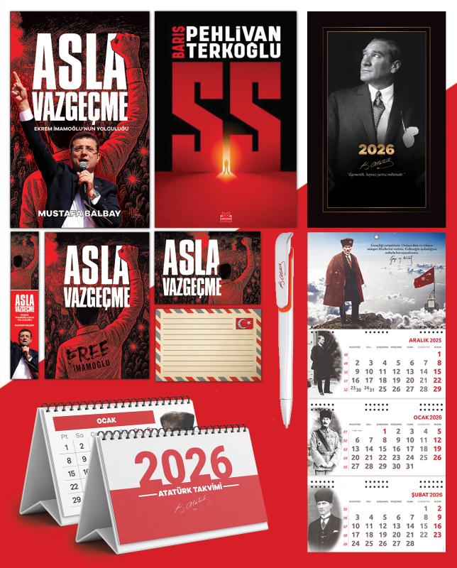 - ASLA VAZGEÇME - MUSTAFA BALBAY "Ekrem İmamoğlu, İstanbul Büyükşehir Belediye Başkanlığı'nı 2019 ve 2024'te üç kez kazandı. Her seferinde, “Daha fazlasını yapabilirim” mesajını verdi. 2023'te Cumhuriyet Halk Partisi'nde değişimin önünü açan kişi olarak, “Türkiye'yi de değiştireceğiz” diye haykırdı. Sırada cumhurbaşkanlığı vardı. Bu hedefe yürürken 23 Mart 2025'te tutuklandı. İmamoğlu önüne her engel konduğunda şöyle haykırdı: “Asla vazgeçmeyeceğim!” Bu söz aynı zamanda tüm Türkiye'ye idi. Tutuklanmasına giden yolla, cumhurbaşkanı adaylığına giden yol Silivri'de kesişti. Esareti göze alarak, cesareti örgütledi. Türkiye ayağa kalktı. CHP Genel Başkanı Özgür Özel, dipten gelen dalgayı uzun soluklu, iktidar hedefli bir yürüyüşe çevirdi. Mustafa Balbay, beş yıl hapis yattığı Silivri Cezaevi'nde İmamoğlu'yla üç kez görüştü. Mücadelesini kendi ağzından dinledi, yazdı. Bu kitapta, gerilimli, sürprizlerle dolu, macera romanlarını aratmayan olaylarla karşılaşacaksınız… Bu kitapta, pes etmeyi hafızasından silmiş, kararlı bir insanı daha yakından tanıyacaksınız… Bu kitapta, Silivri duvarlarına bakınca ufku gören bir liderin uzun yolculuğuna eşlik edeceksiniz…" SS - BARIŞ PEHLİVAN - BARIŞ TERKOĞLU - Mafya hakkında rapor yazan emniyet müdürünün başına neler geldi? - Süleyman Soylu ile Ekrem İmamoğlu arasındaki küfürlü konuşma neden yapıldı? - AKP'li işadamının bilinmeyen tecavüz dosyasında neler var? - Cumhurbaşkanlığı'ndaki kritik ismi kim gizlice fotoğrafladı? - Sedat Peker'in Süleyman Soylu ile ilişkisindeki sırlar ne? - Soylu, Erdoğan sonrasına hazırlanan bir proje mi? - Devletten maaş alan troll yapılanması nasıl kuruldu? - Soylu, finansörlerini kime nasıl açıkladı? - Soylu, Fethullah Gülen'e hangi konuda danıştı? - Hablemitoğlu dosyasına Soylu'nun müdahalesi nasıl oldu? - Sinan Ateş cinayetinde Soylu neden sessiz kaldı? - Soylu'nun soruşturma evrağında neler var? - Gizli ByLock yazışmalarında Soylu'nun adı nasıl geçiyor? - Demirel ve Menderes, Soylu hakkında neler söyledi? - SS plakalı o aracın öyküsünde hangi ilişkiler var? - Soylu'nun dizinin dibinde oturduğu tarikat şeyhi kim? - AKP'de kimler Soylu ile kavga ediyor? - Cezaevinden Soylu'ya gönderilen gizli mektupta neler yazıyor? - Soylu'nun sildirdiği arşivinde neler var? Türkiye'nin gündeminden düşmeyen Süleyman Soylu'nun bilinmeyenlerini ilk kez okuyacaksınız. Barış Pehlivan ve Barış Terkoğlu, SS ile büyük sır kapısını açıyor. 2026 Atatürk Ajandası • Günlük, haftalık ve aylık olarak bölünmüş • Her gün için Atatürk'ün bir sözü • Amerikan Bristol Kapak • 160 Sayfa • 70g kitap kağıdı 3 Parça Spiralli 2026 Atatürk Gemici Duvar Takvimi • Ürün Ebadı: 27,5x65 cm • Blok Ebadı: 27,5x13,5 cm • Üst Karton Ebadı: 27,5x20 cm • Yapraklar: 80 g 1. Hamur • Alt Karton: 350 g Bristol • Göstergeli 2026 Masa Takvimi Atatürk İmza Baskılı Kalem