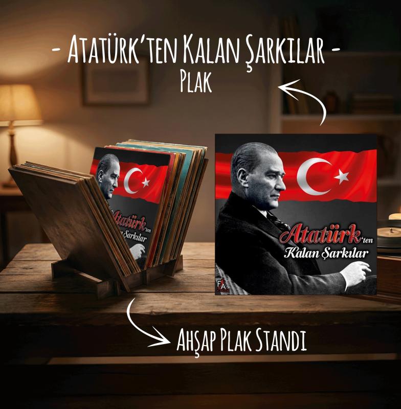Atatürk'ten Kalan Şarkılar Plak ve Ahşap Plak Standı