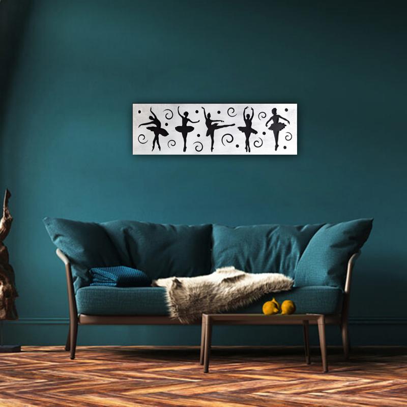 Balerin Kızlar 2 Katlı Ahşap Oyma Tablo Siyah & Gümüş HK1406