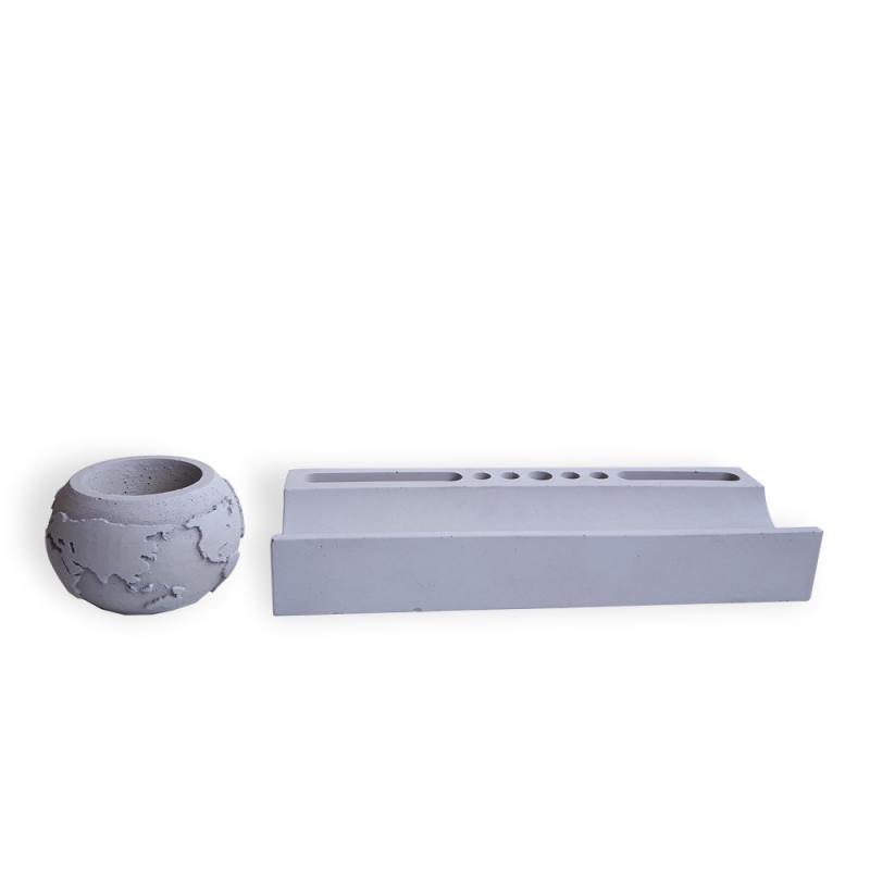 Beton Ofis Seti - Masaüstü Organizer, Küçük Dünya Beton Saksı