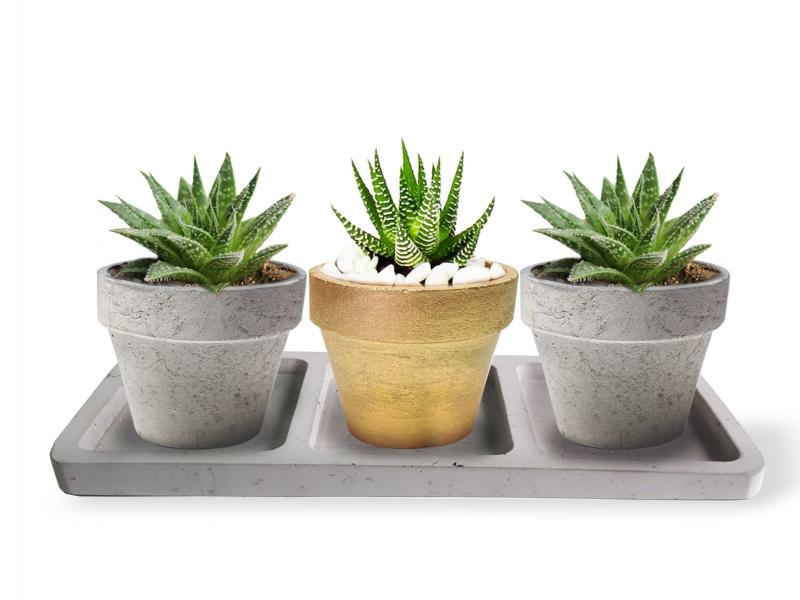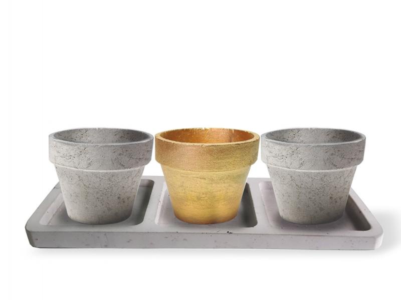 Beton Tepsili 3'lü Konik Beton Saksı Seti HK1633