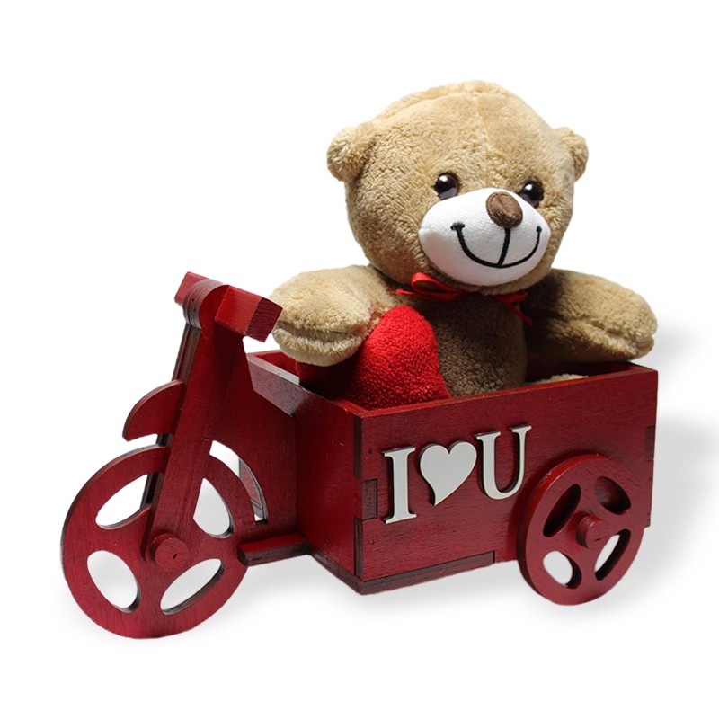 Büyük Bisiklet Çiçeklik Kırmızı, I Love You Yazılı Peluş AyıcıklıHK0335-0011A