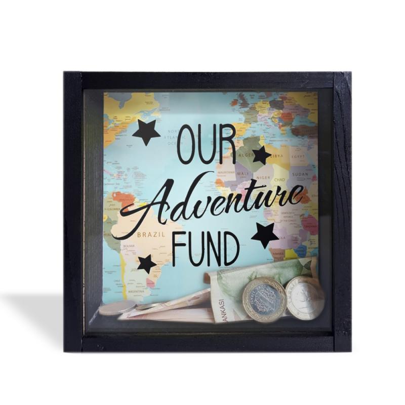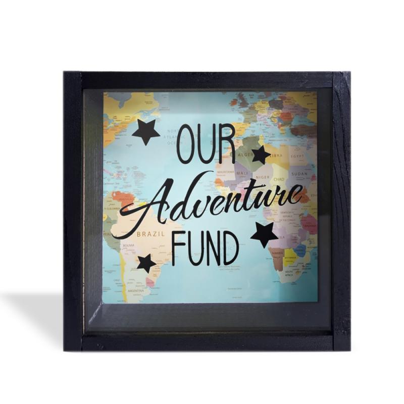 Camlı Ahşap Kumbara Adventure Siyah