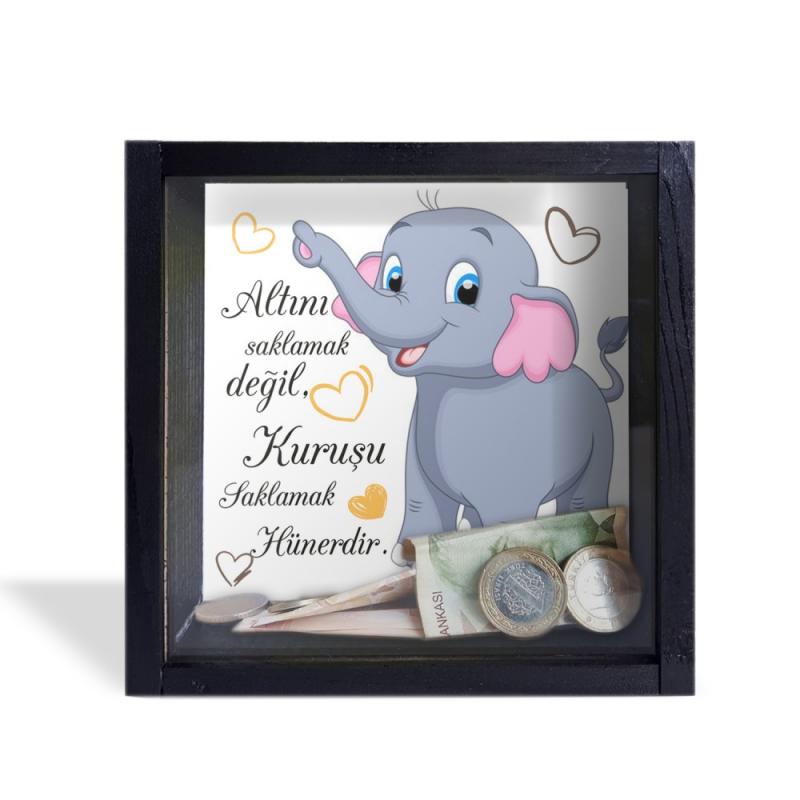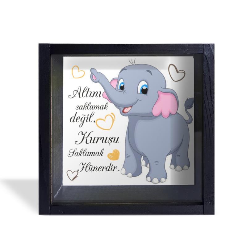 Camlı Ahşap Kumbara Filli Siyah HK0665-0002