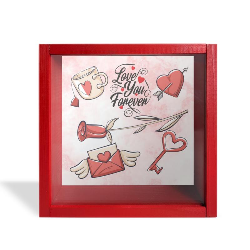 Camlı Ahşap Kumbara ı love Forever Sevgililer Günü Objeleri "Kırmızı"