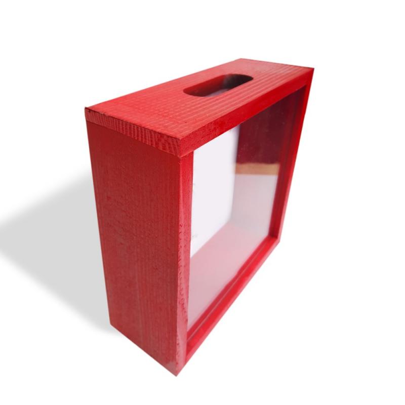 Camlı Ahşap Kumbara I Love You "Kırmızı"