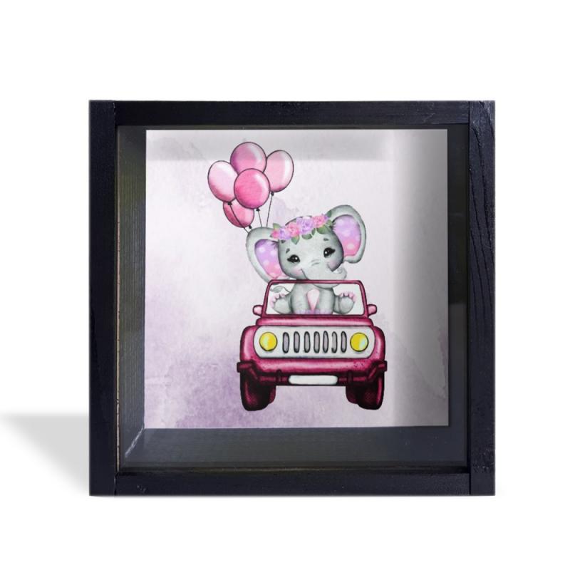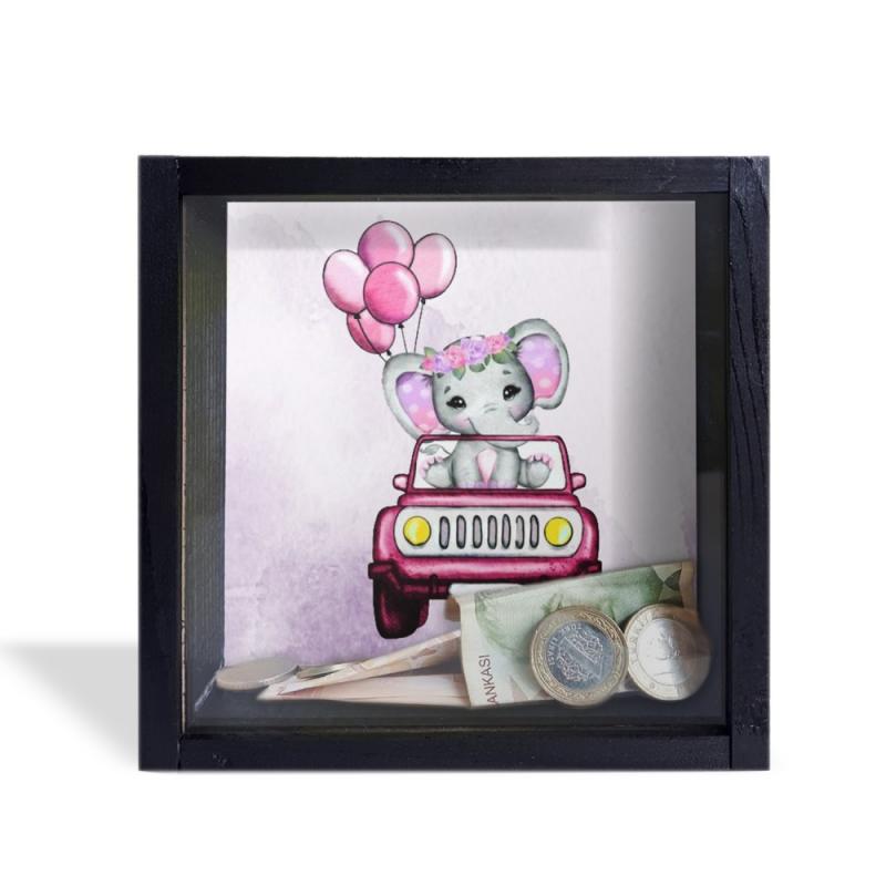 Camlı Ahşap Kumbara Kırmızı Arabalı Fil Siyah HK0658-0002