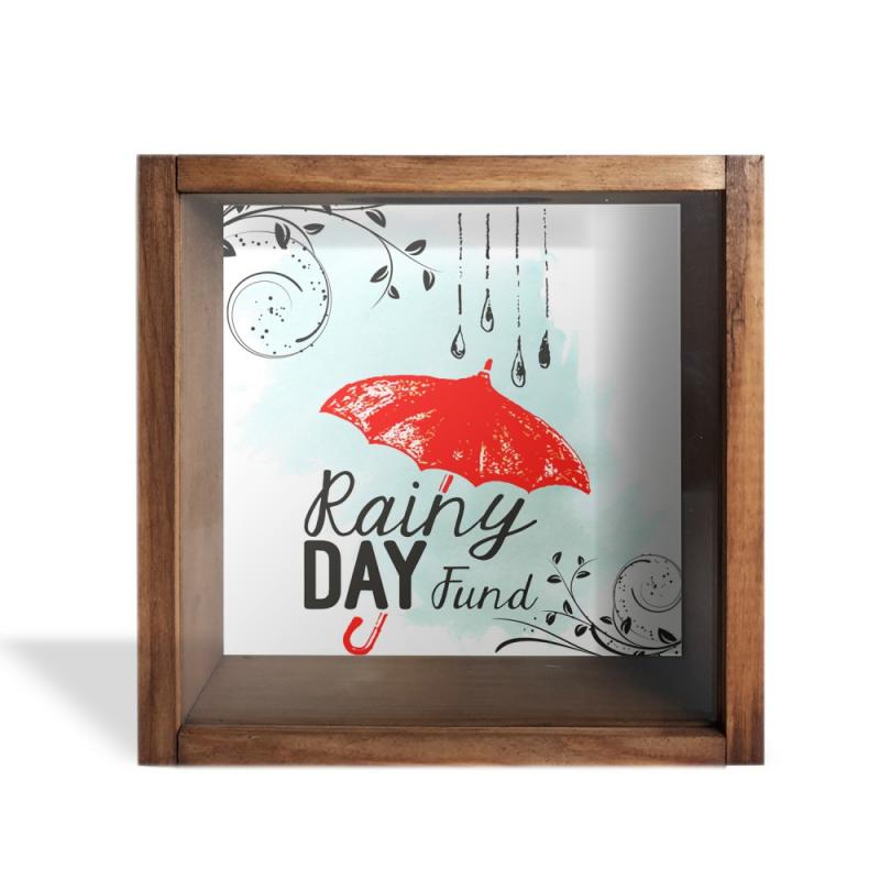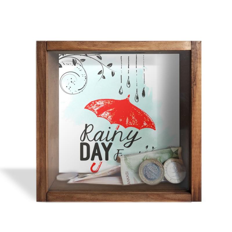 Camlı Ahşap Kumbara Kırmızı Şemsiyeli