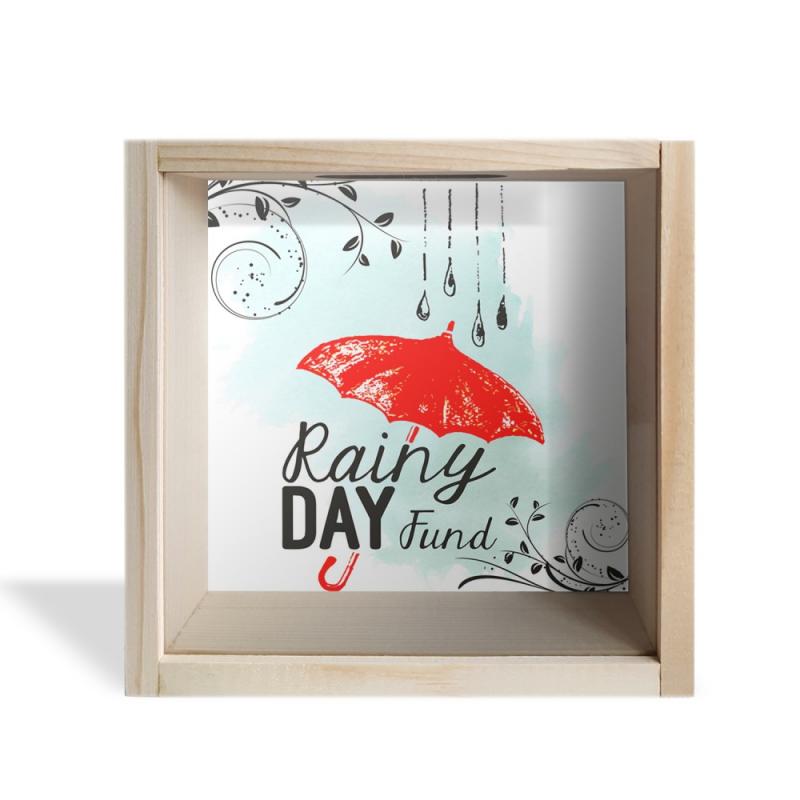 Camlı Ahşap Kumbara Kırmızı Şemsiyeli Ham Ahşap