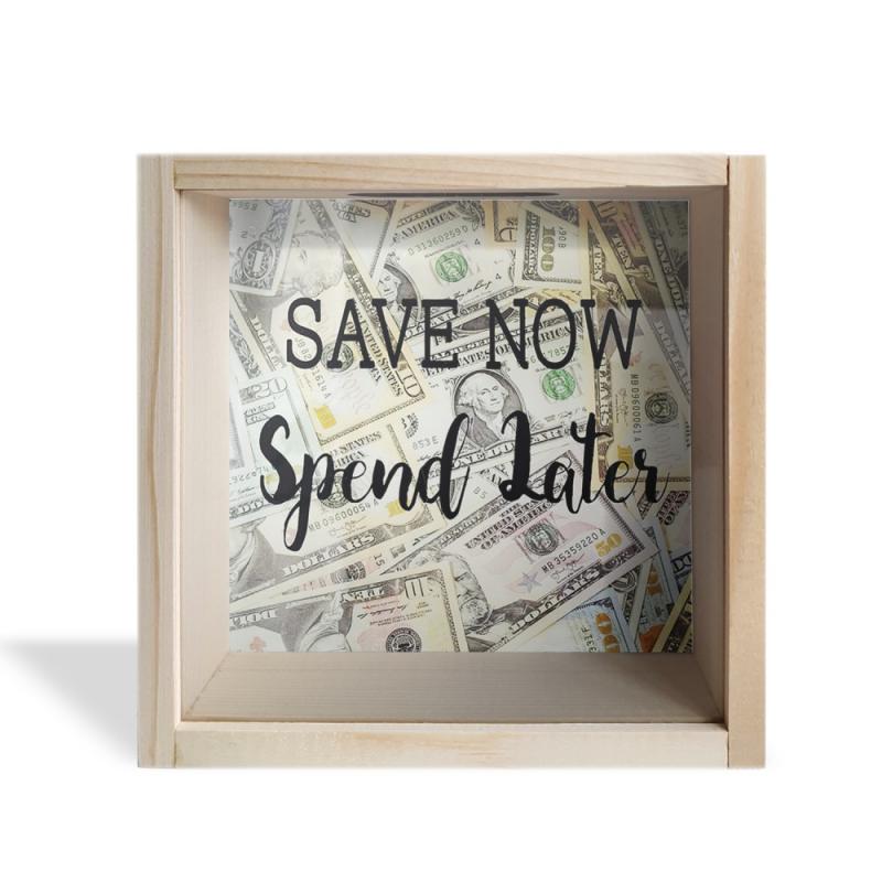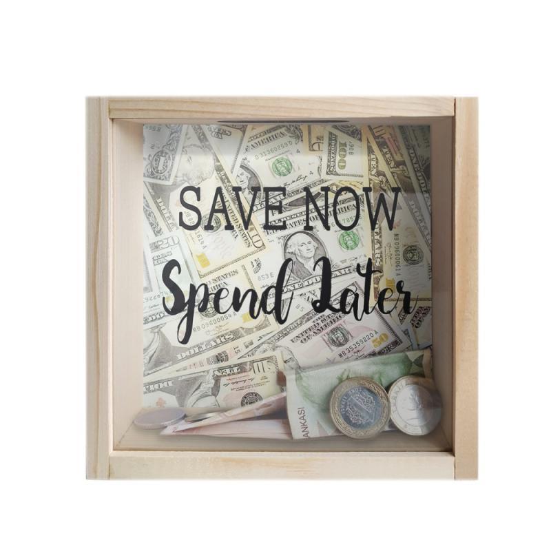 Camlı Ahşap Kumbara Save Now Ham Ahşap