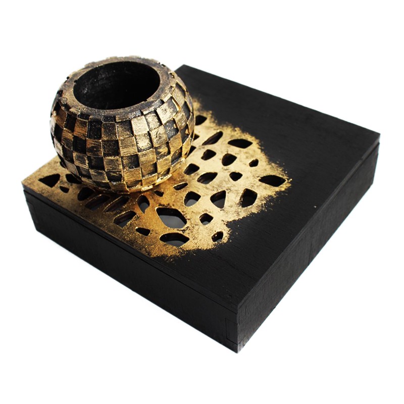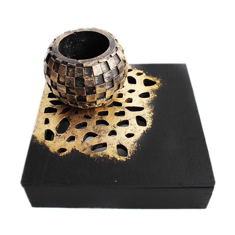 Class Concrete 5-Ahşap Ayak Damalı Küre Beton Saksı