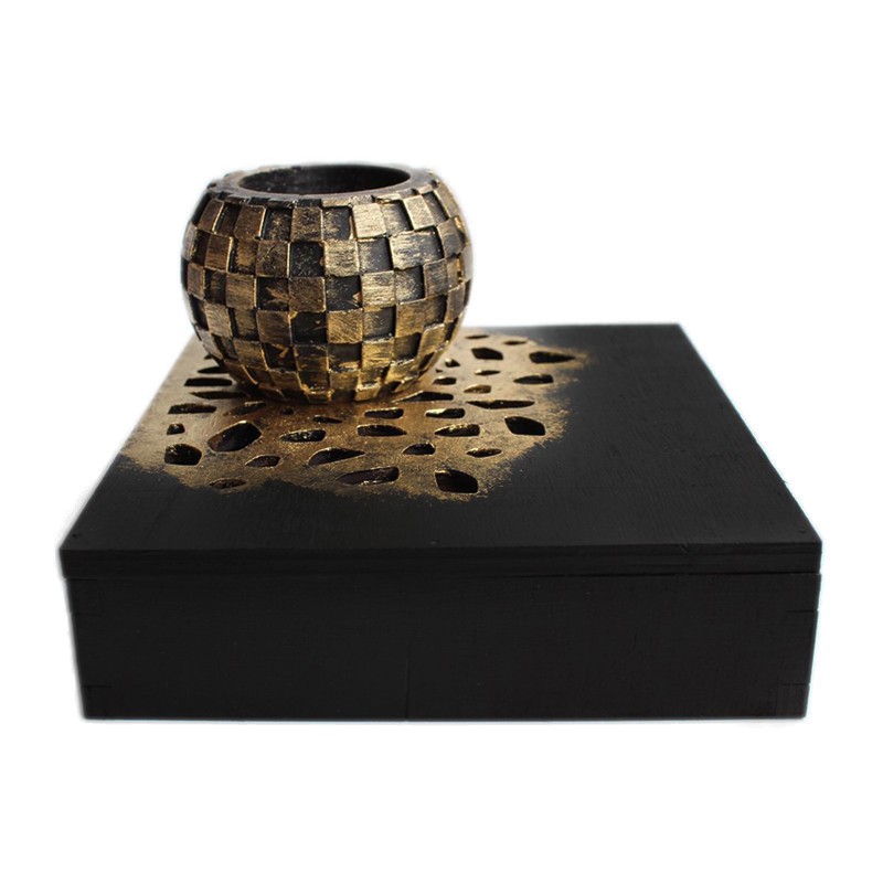 Class Concrete 5-Ahşap Ayak Damalı Küre Beton Saksı HK1504