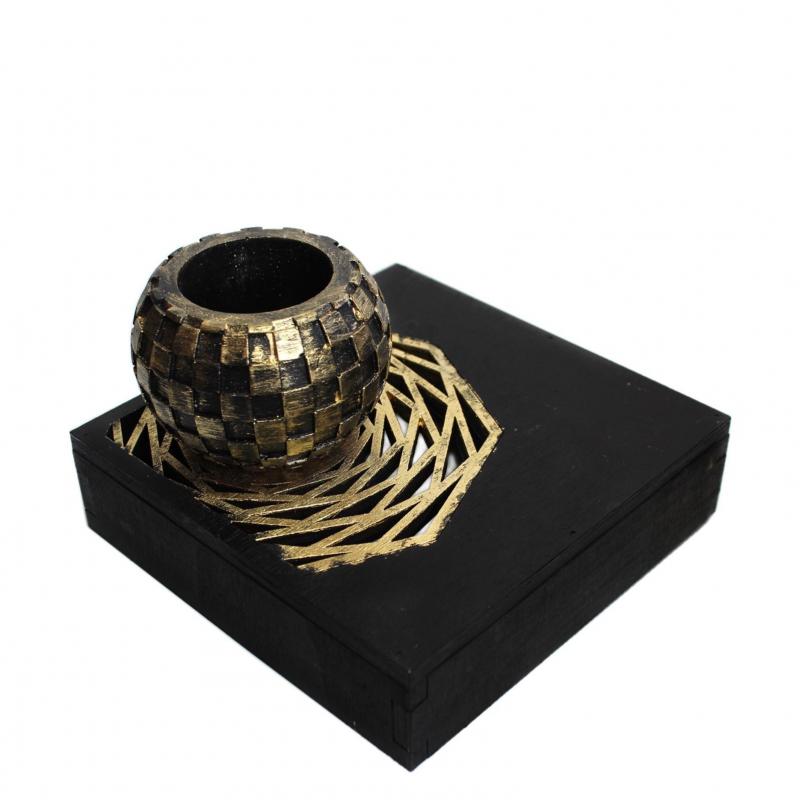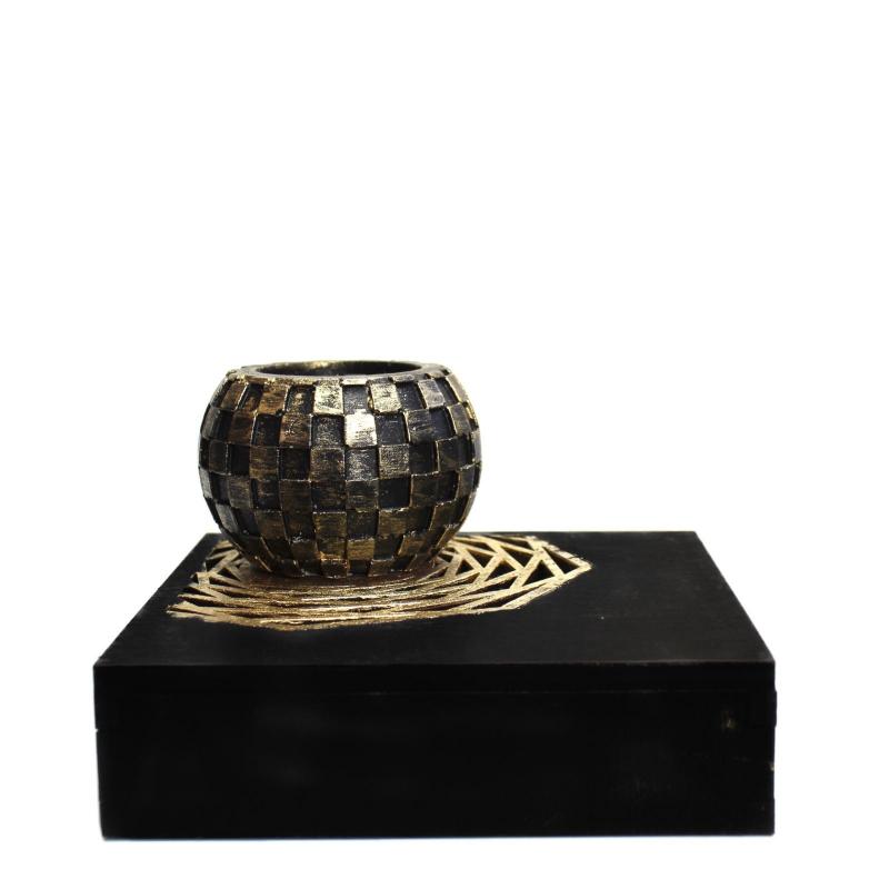 Class Concrete 6-Ahşap Ayak Damalı Küre Beton Saksı
