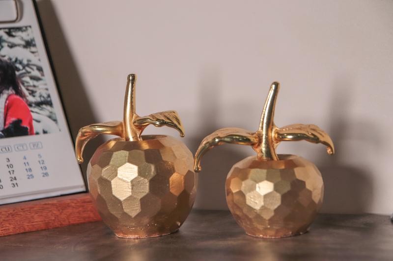 Dekoratif 2'Li Beton Elma - Altın HK1533