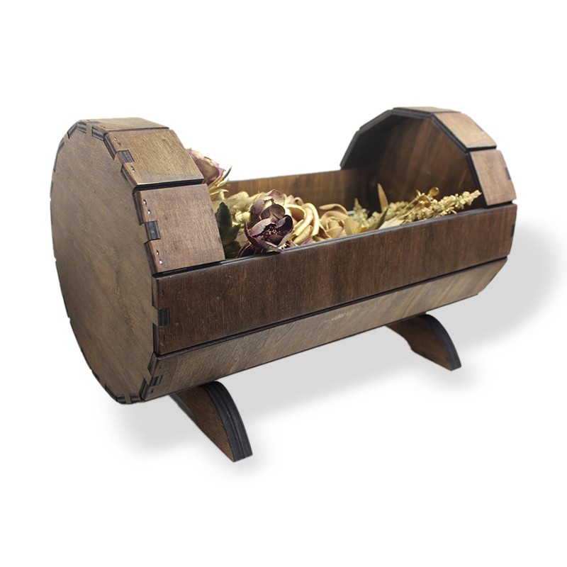 Dekoratif Ahşap Fıçı Çiçeklik, Büyük HK0931