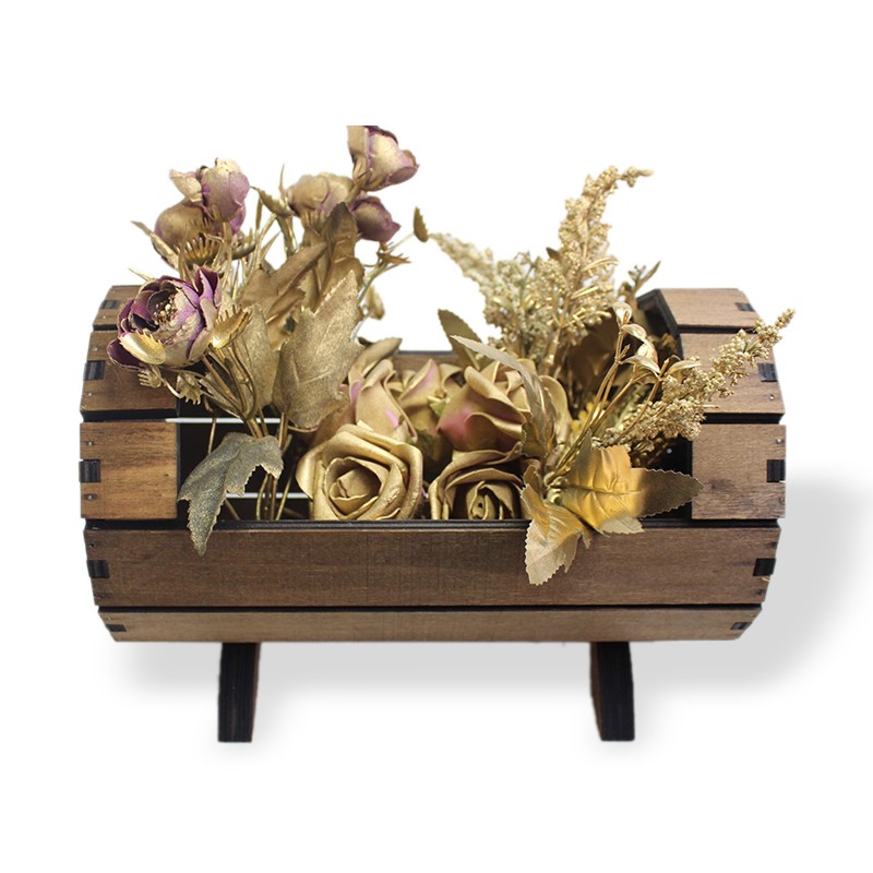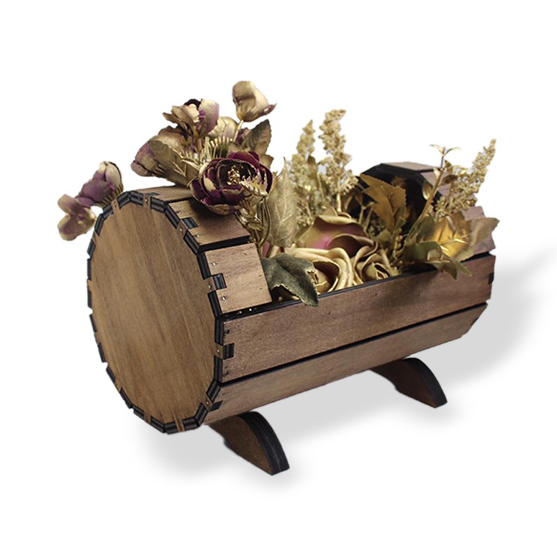 Dekoratif Ahşap Fıçı Çiçeklik, Küçük HK0930