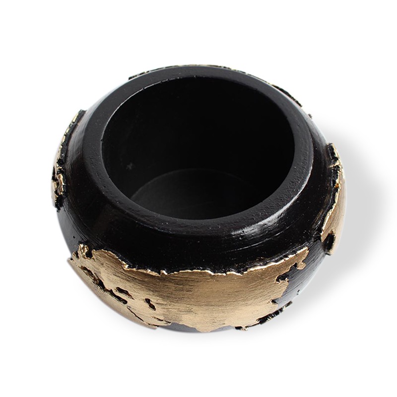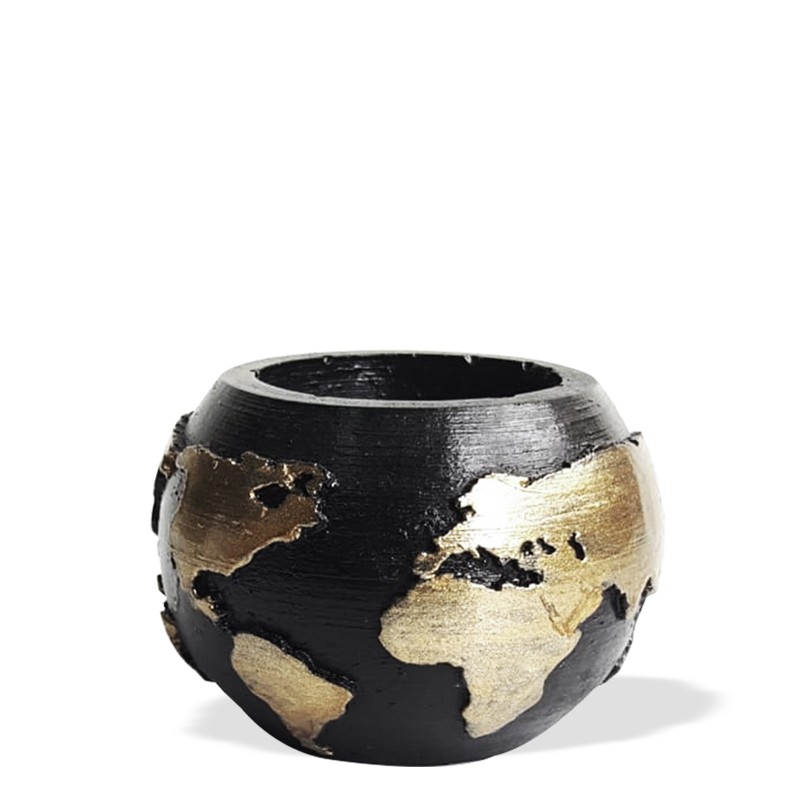 Dünya Desenli Beton Saksı Siyah Altın Varaklı Küçük BoyHK1521-SAV