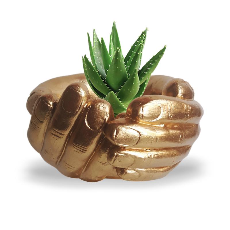El Desenli Küçük Boy Beton Saksı Altın VaraklıHK1567-AV