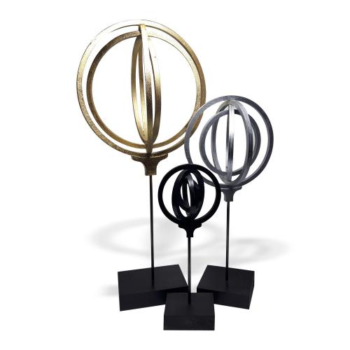 Elenor, Ahşap Halkalı Ayaklı Dünya Biblo 3'lü Set "Siyah, Gümüş, Altın Renk"HK0169