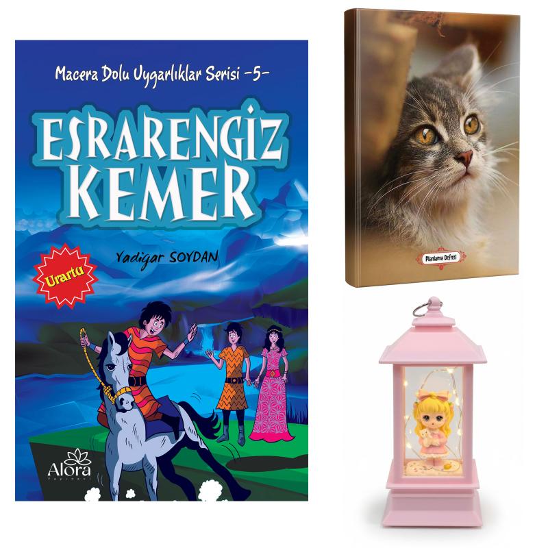 Esrarengiz Kemer - Minik Kedi Planlama Defteri ve Kedili Kız Fener Tipi Işıklı Kar Küresi