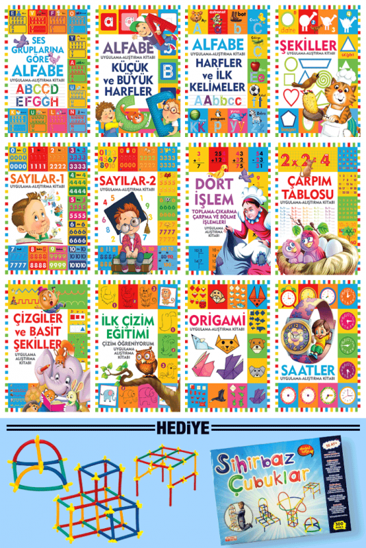Etkinlik Kitapları Seti ve Sihirbaz Çubuklar Oyunu Dikkat Geliştirici Uygulama ve Alıştırmalar