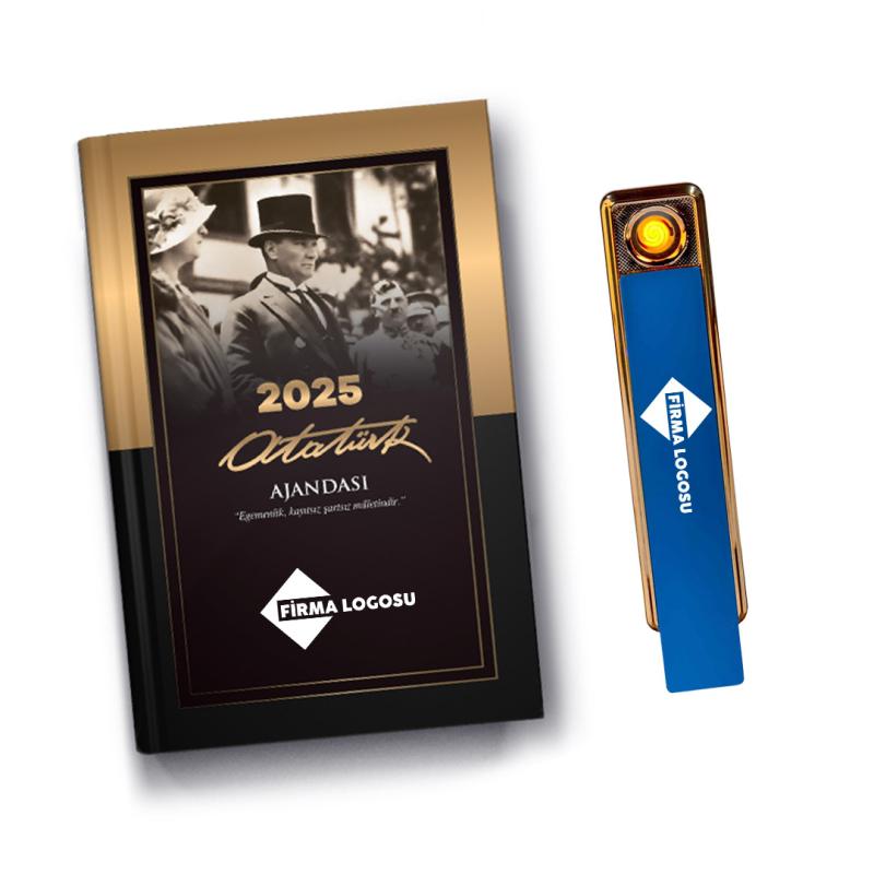 Firmalara Özel 2025 Atatürk Ajanda Asalet ve USB Şarjlı ÇakmakMinimum Sipariş 10 Adet