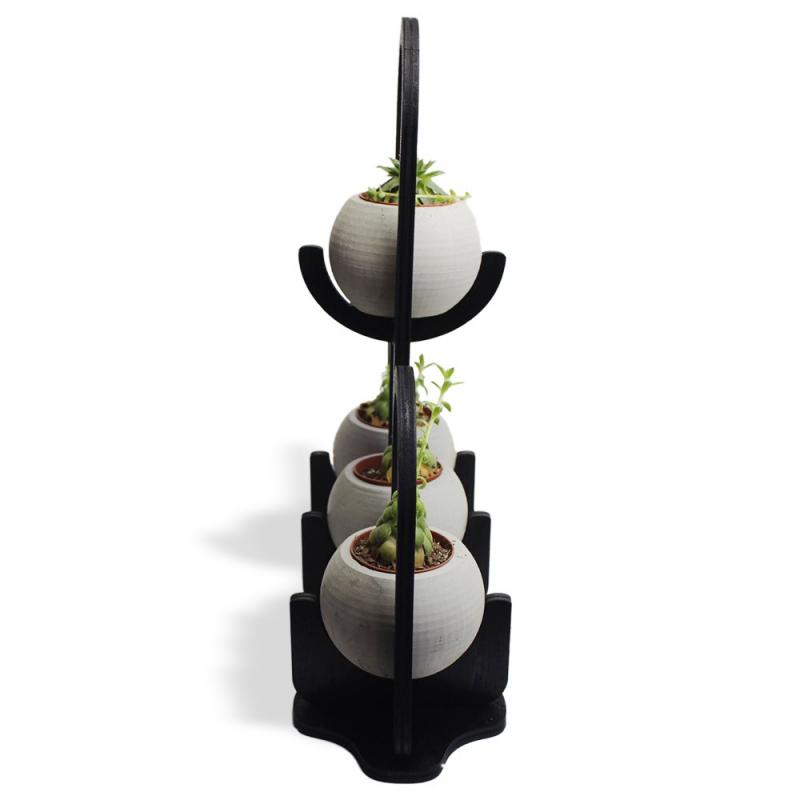 Hera 4'lü Beton Saksılı Ahşap Çiçeklik HK1611