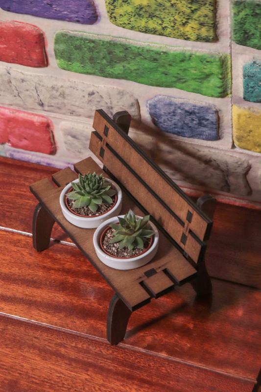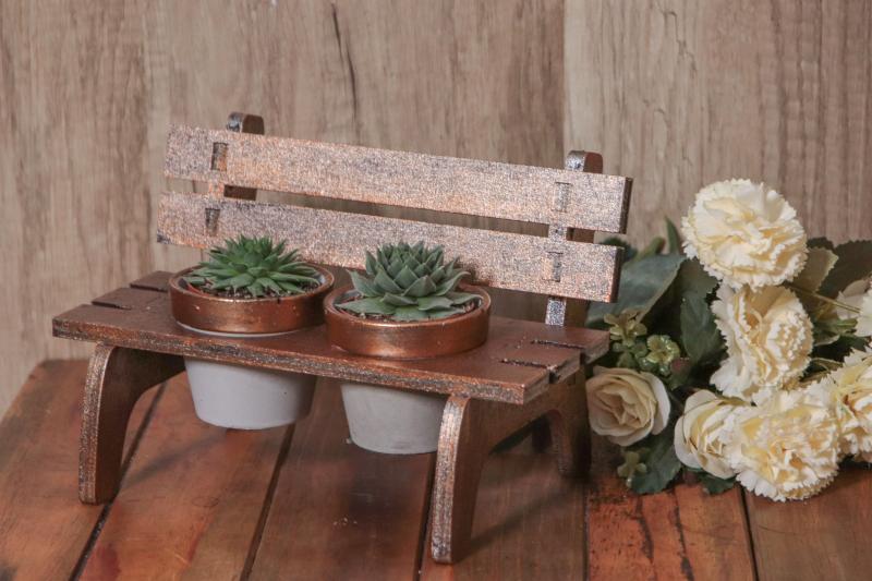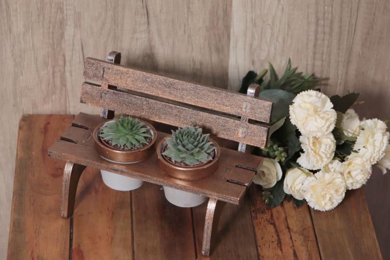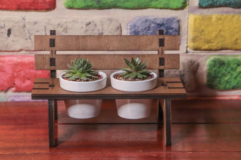 2 adet beton saksı ve ahşap bank masalarınıza şık bir görüntü katacak içinde sukulent ve kaktüslerinizi yetiştirmek için tasarlanmıştır.