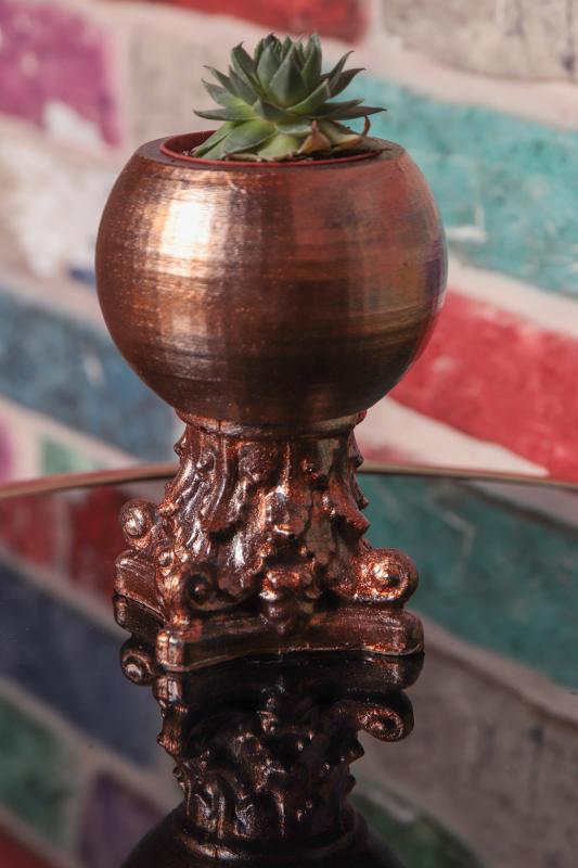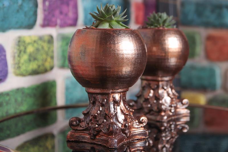 Tamamiyle betondan yapılmış bakır rengine boyanmış ve ayaklı sukulent ve saksıklarınızı yetiştirebilceğiniz şık saksımızla masalarınıza ofislerinize ve evlerinize renk katabilirsiniz.