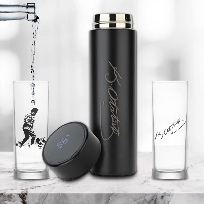 İkili Kocatepe Meşrubat Bardağı - Atatürk İmzalı Dereceli Termos