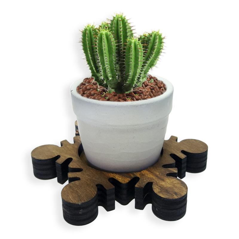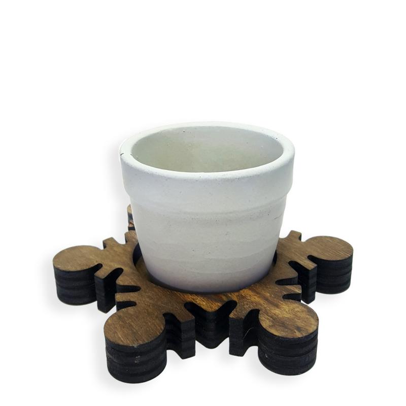 Kartanesi Desenli Ahşap Ayaklı Konik Beton SaksıHK1651